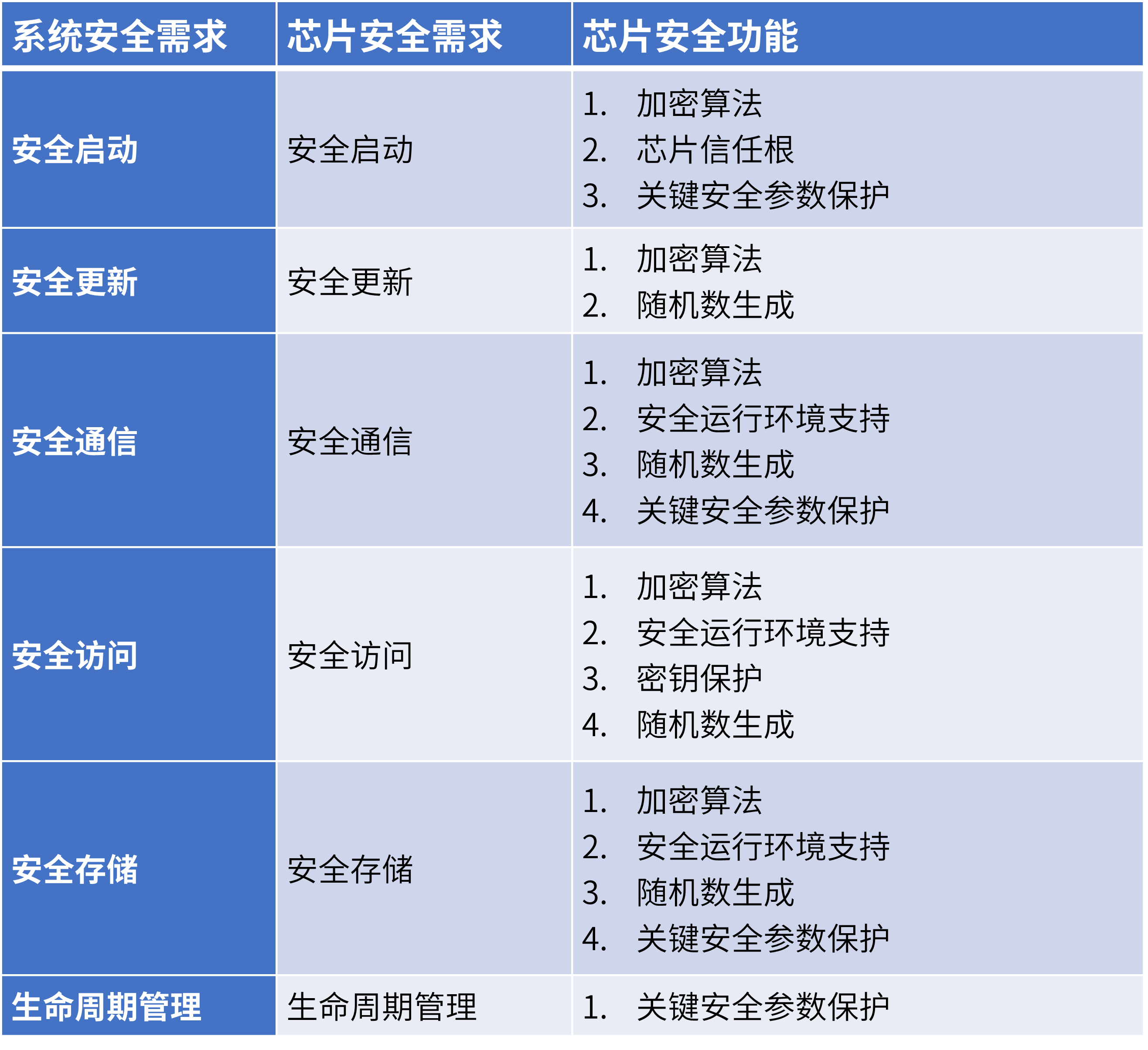 此外,加特兰网络安全架构师章赟杰还在会上详细介绍了国内密码学标准的相关情况。他表示,中国市场有着独特的密码安全标准,包括国密标准以及正在推进的强制性国家标准《汽车密码应用技术要求》。国密标准涵盖密码算法、安全 SoC 接口、密钥管理、敏感信息保护、安全 SoC 固件安全等核心领域,将芯片安全等级由低至高划分为 1 级至 3 级,等级越高,安全要求越为严格。