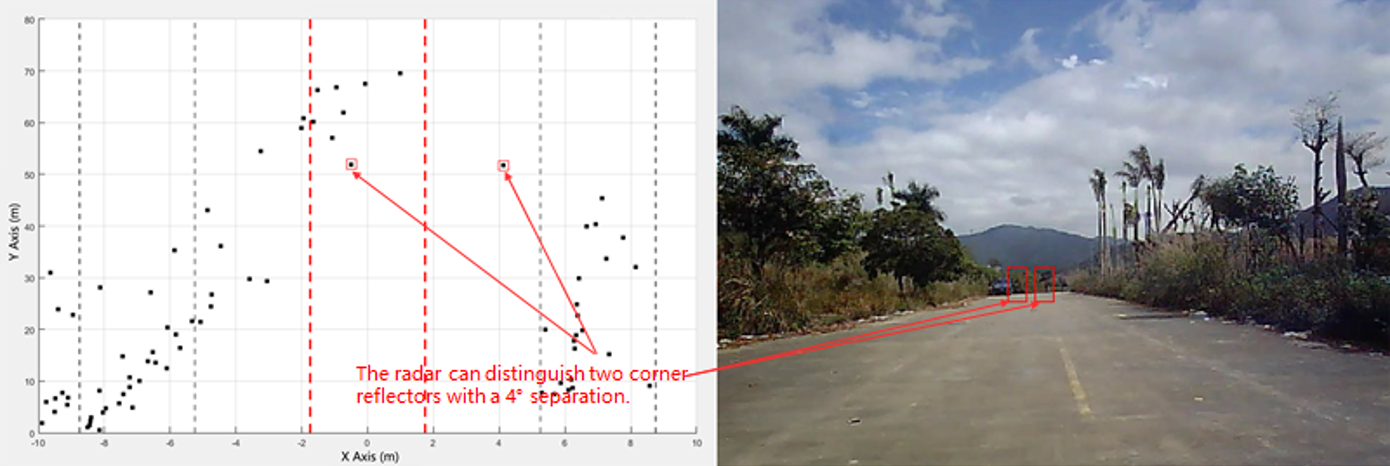 Calterah's high-performance corner radar solution based on the Alps-Pro mmWave radar SoC can accurately identify pedestrians, vehicles, and complex road conditions, achieving Blind Spot Detection (BSD), Lane Change Assist (LCA), Rear Cross Traffic Alert (RCTA) and other ADAS functions. This solution offers long-range and medium-range modes with a non-equally-spaced DDM-MIMO waveform design. The radar can detect multiple targets around a vehicle stably, boasting long detection range, wide velocity range, wide Field of View (FOV), stable angular resolution, high point-cloud density, etc. With such advantages, the corner radar solution can better fulfill the requirements of L2/L2+ ADAS systems, facilitating the wide application of intelligent driving assistance.